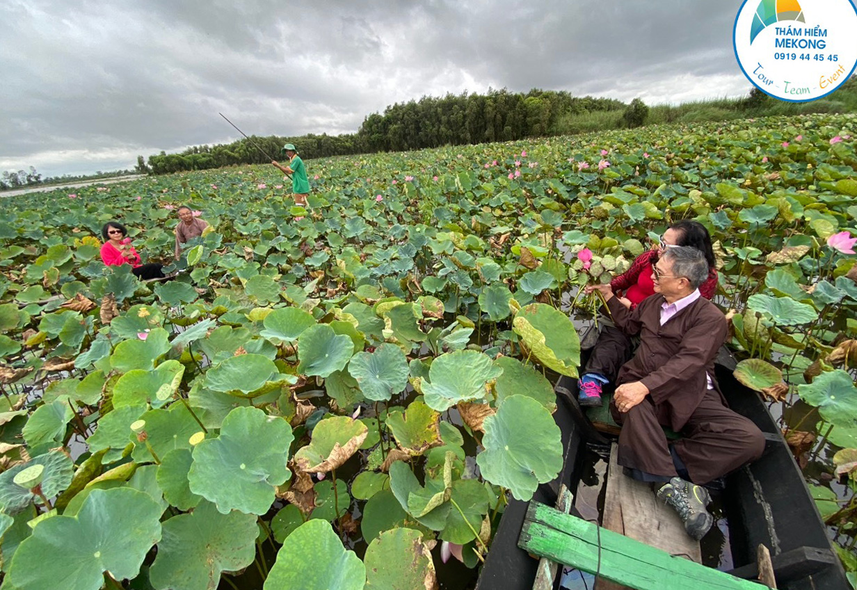 Thám Hiểm MeKong đưa quý khách đến Làng Nổi Tân Lập trải nghiệm đi xuồng xuôi dòng Rạch Rừng, ngắm những trảng sen, trảng súng…xung quanh bốn bề là nước như một ốc đảo. Tới vườn quốc gia Tràm chim – thiên đường của những chú chim khi mùa nước nổi về. Ngắm nhìn những cánh chim cứ tung bay trên bầu trời với nhiều màu sắc rực rỡ.