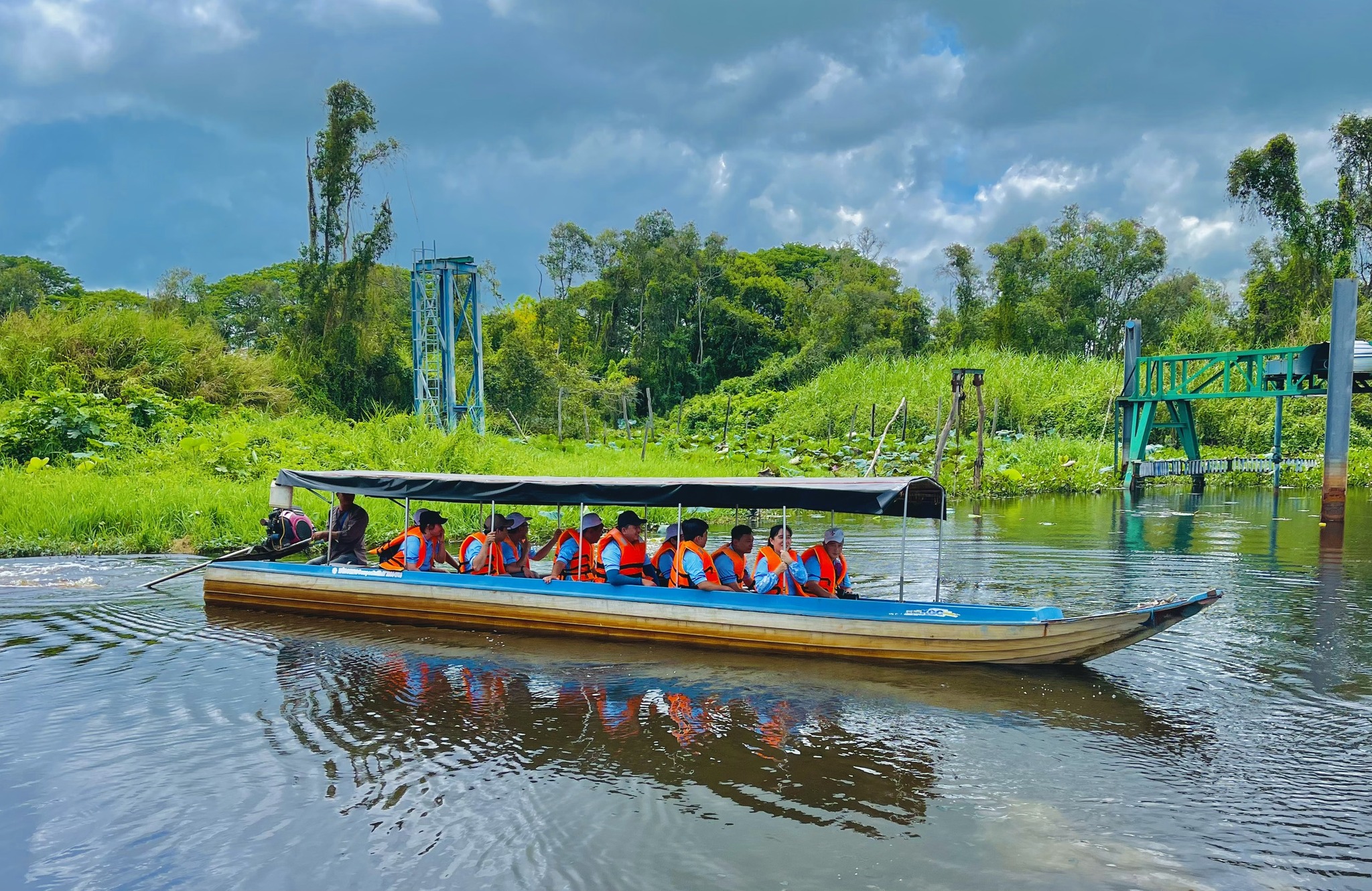 • Quý khách trải nghiệm thuyền cáp kéo dưới nước / tàu máy vỏ lãi, đi dọc tuyến sông Rạch Rừng. Dự kiến 40 - 50 phút.