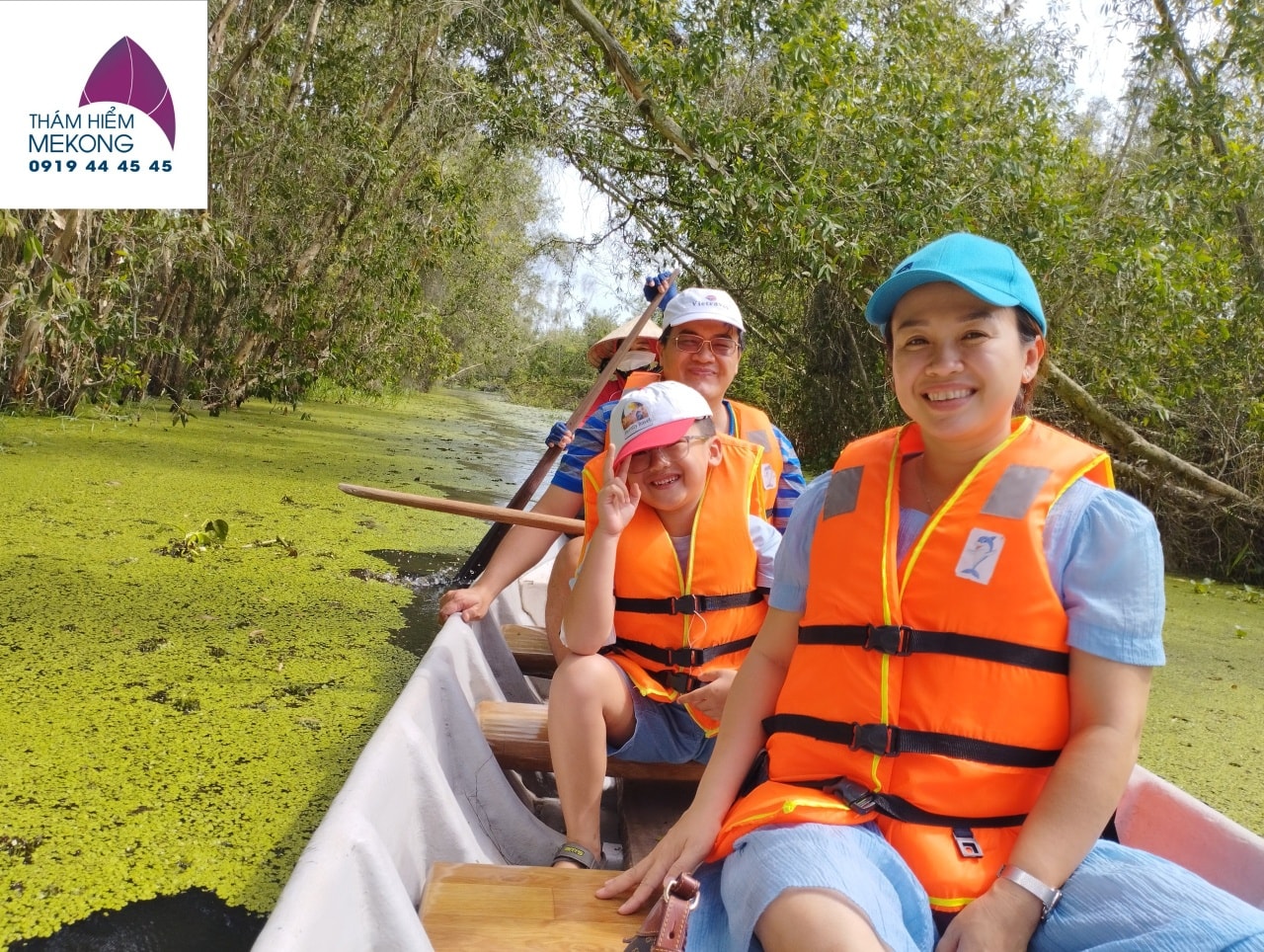 Tiếp theo hành trình Quý khách lên xuồng ba lá đi tham quan toàn cảnh rừng tràm tuyệt đẹp. Chiếc xuồng sẽ len lõi trên những con rạch nhỏ xuyên rừng tràm rất yên bình và tỉnh lặng, với 30 phút cho một cuộc trải nghiệm ngồi tham quan trên xuồng bạn sẽ trở về với thiên nhiên đầy xúc cảm.