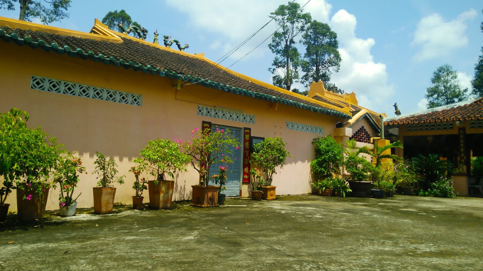 Sau khi đi qua cổng này, sẽ bắt gặp một cổng nữa, phía sau cổng này là một sân rộng, được tráng xi măng với nhiều cây xanh, hoa cảnh xung quanh sân. Bên trong khuôn viên có bức bình phong vẽ hình long hổ. Trước chánh điện là võ ca và cột cờ cao 10m treo cờ Soái.