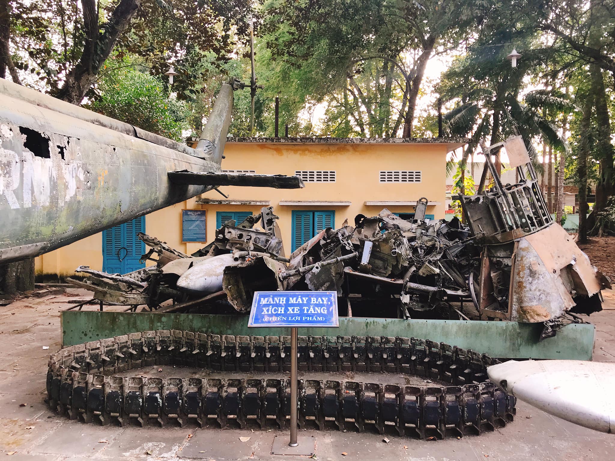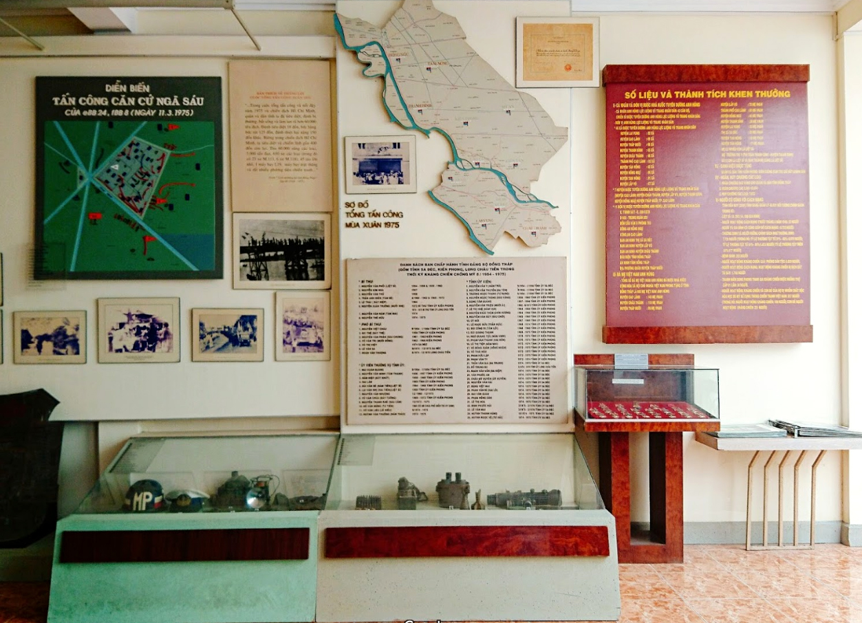 Khu ngoài trời trưng bày chiến lợi phẩm trong thời kỳ chiến tranh như máy bay, tàu chiến, các loại súng lớn… Đặc biệt là chiếc máy bay Mic 17, do Đại tá – Anh hùng lực lượng vũ trang nhân dân Nguyễn Văn Bảy, người con quê hương Đồng Tháp điều khiển đã từng bắn rơi nhiều máy bay địch.