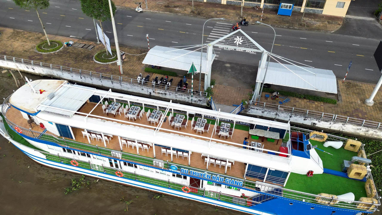 Du thuyền Hậu Giang không chỉ là một phương tiện di chuyển, mà còn là một không gian nghỉ dưỡng tinh tế. Được thiết kế hiện đại nhưng vẫn giữ được nét duyên dáng truyền thống, du thuyền có nhà hàng ấm cúng tại tầng 1 (có điều hòa mát lạnh) và khu vực thư giãn ngắm cảnh tại tầng 2, giúp bạn có thể chiêm ngưỡng trọn vẹn cảnh quan sông nước.
